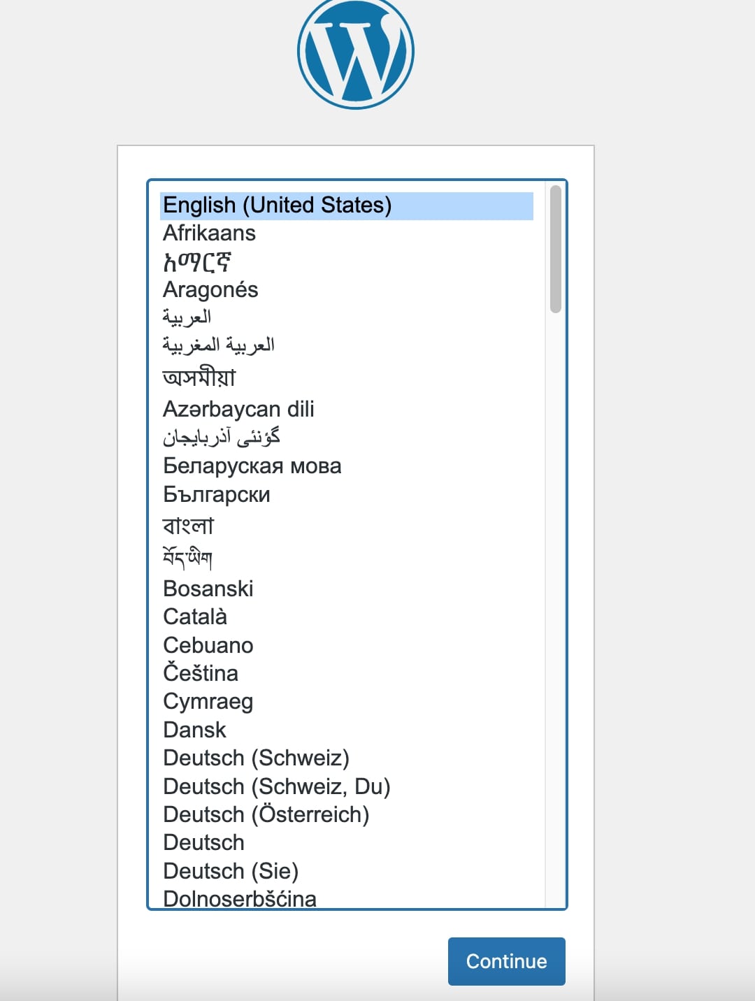 English (United States) –> Continue