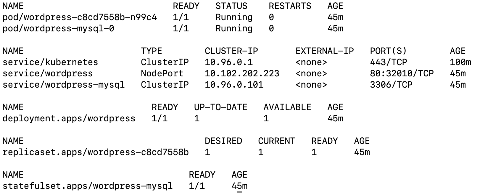 $ kubectl exec -ti wordpress-mysql-0 /bin/bash
